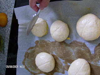 Ahora disponemos los panecillos sobre la placa con papel de horno y marcamos con el dorso de un cuchillo, sin cortar!.