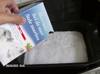Se pone en una asadera la sal de mar y se deja un espesor de 1/2 centimetro. Encima van las papas cortadas, con la mitad cortada hacia arriba.